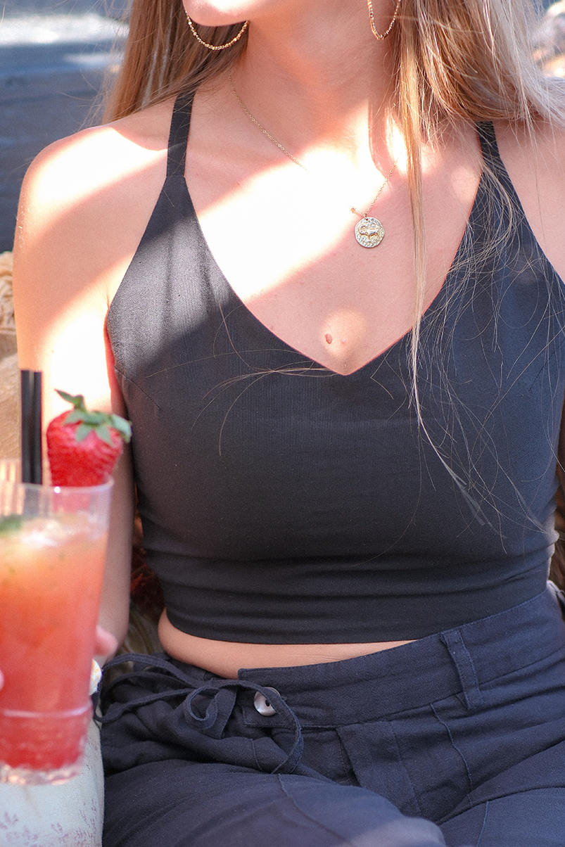 Élégant et polyvalent, le top Yash séduit par sa coupe épurée et son dos travaillé. Entièrement réversible, il vous permet de varier les associations selon vos envies. Son système de laçage croisé dans le dos offre un maintien ajustable et graphique, tout en soulignant la silhouette avec finesse.